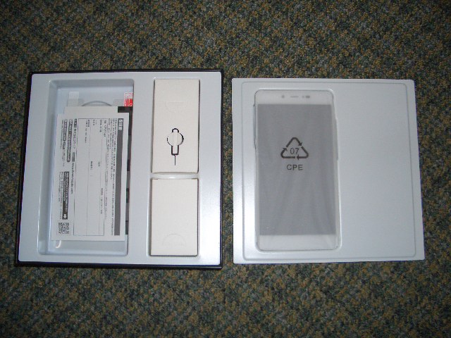 これが、スマホ本体が入っているパッケージ。ちなみに、パッケージに写っている機体の色は青だが、私が注文したのはシルバーだ。