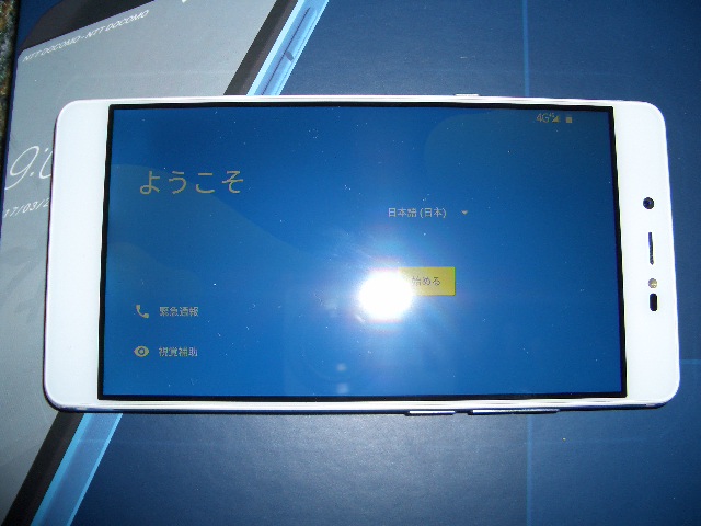 そしてスマホを起動!初めて起動させた際はこの様に「ようこそ」画面が表示される。